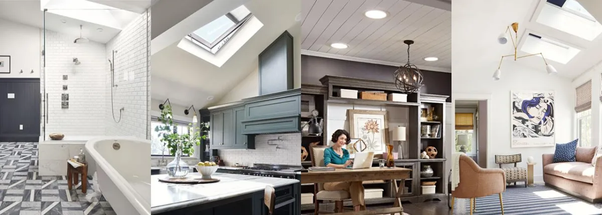 Fixed or venting units (manual or solar), integrated shades, laminated glass for noise and UV control, and sizes to fit most roof pitches—perfect for kitchens, halls, and baths.